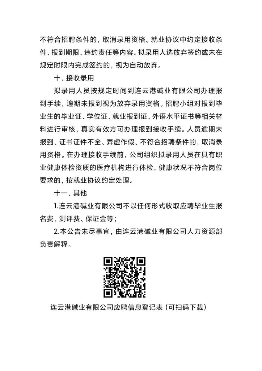 连云港碱业有限公司2026年度招聘简章